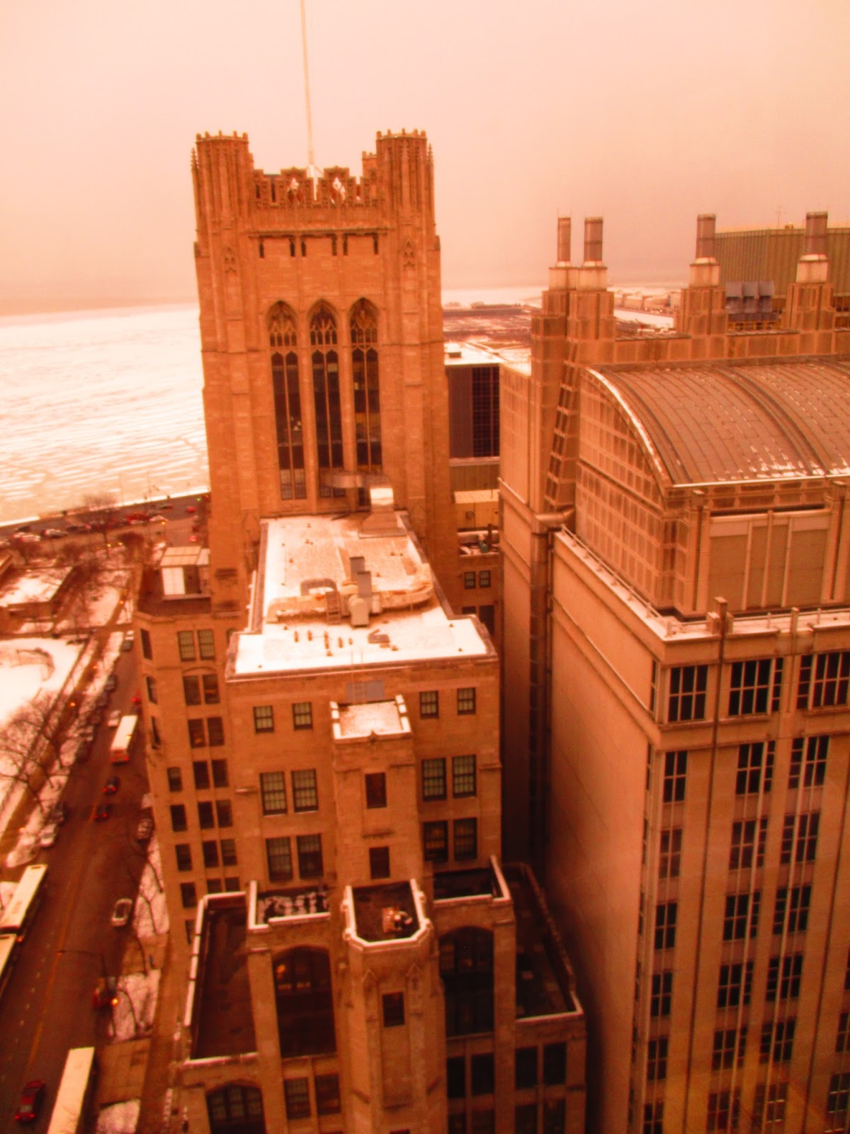 Visiting a friend on the 16th floor of Prentiss Womens' hospital